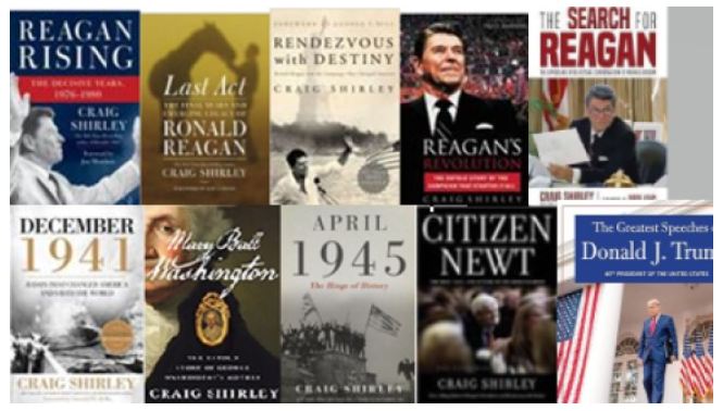 Historian and Reagan biographer Craig Shirley is the author of Reagan’s Revolution: The Untold Story of the Campaign That Started It All; Rendezvous with Destiny: Ronald Reagan and the Campaign That Changed America; December 1941: 31 Days That Changed America and Saved the World; Last Act: The Final Years and Emerging Legacy of Ronald Reagan; Reagan Rising: The Decisive Years, 1976-1980; Citizen Newt: The Making of a Reagan Conservative; Mary Ball Washington: The Untold Story of George Washington’s Mother; April 1945: The Hinge of History, as well as many articles and essays on politics and the conservative movement.