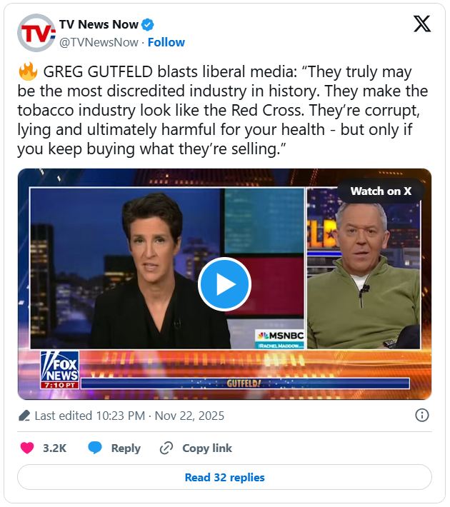 He answers the unrequited need of the citizenry, who want to insult and degrade the elites who are not their betters. Gutfeld champions individualism in an era dominated by identity and group politics. He argues that people should be defined by themselves, not by their race, gender, or other identities. As he stated himself, “I think it’s a terrible thing to lead with [identity]. I am all for being an individual…When you start talking about these characteristics that define you, it’s actually not defining you at all.” When someone’s identity is threatened by establishment-approve adjectives, they cannot defend themselves, as the “self” is by definition irrelevant to identity politics. Gutfeld recognizes that.
