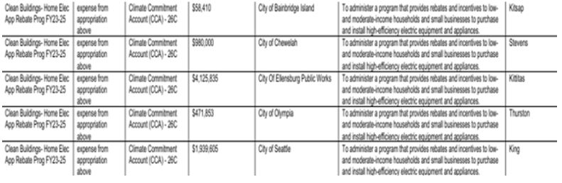 These projects are part of a grant that provides subsidies to install “high-efficiency electric equipment and appliances.” I’ve included a picture showing five of the eight projects as they are listed in the report.